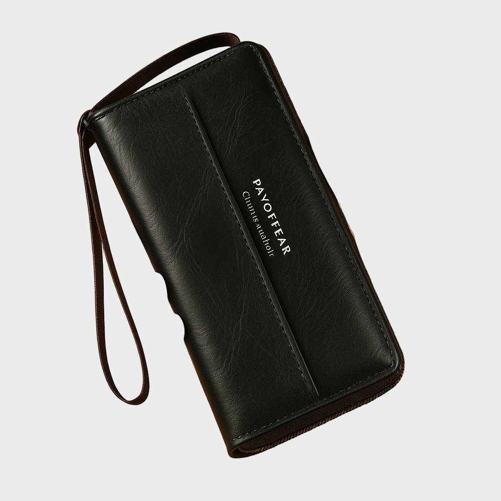 Елегантен мъжки портфейл в черен цвят с минималистичен дизайн и практичен китеник за лесен транспорт. Предлага няколко отделения за карти, банкноти и монети, осигурявайки комфорт и ред в ежедневието. Висококачествената кожена текстура и дискретното лого на предната страна придават модерен и изтънчен вид. Аксесоар, който съчетава стил и функционалност.