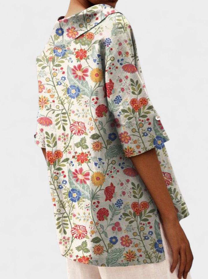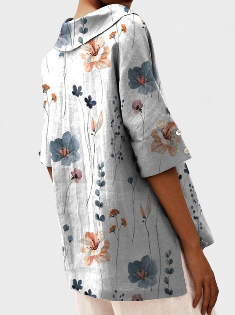 Овкусете гардероба си с тази ненатрапчива бродирана блуза Ботаническа грация. Свободната, течаща форма е приятна за носене и предлага както комфорт, така и сдържана елегантност. Фината цветна бродерия придава изтънчен, артистичен щрих, докато меката, дишаща материя е идеална за целодневно носене. Блузата е проектирана с дискретна яка и детайли с копчета на ръкавите, което я прави универсално парче, което лесно може да се комбинира с панталони, поли или шорти за безупречен елегантен вид.