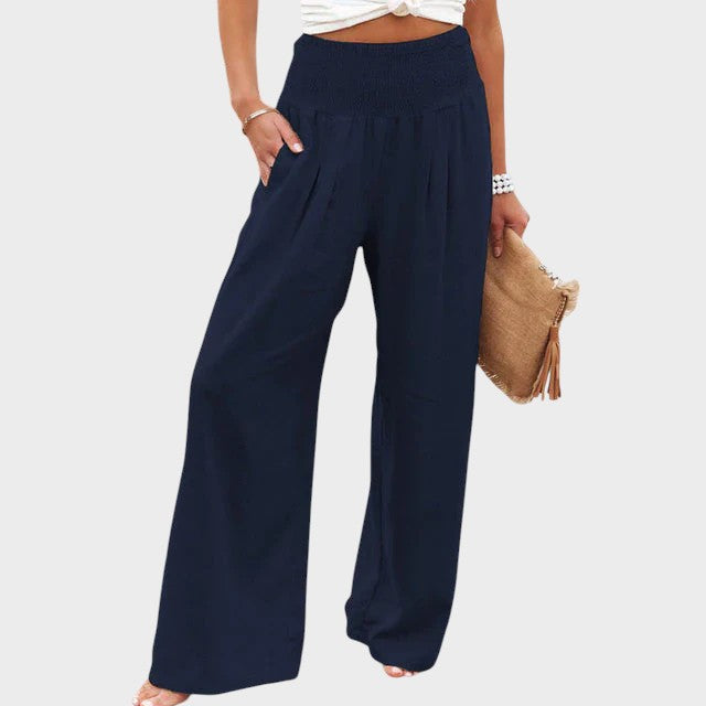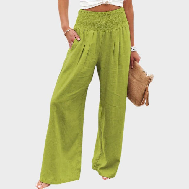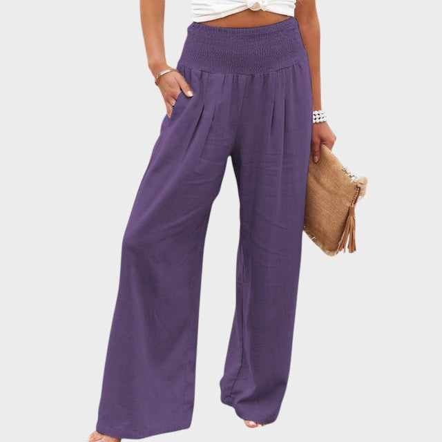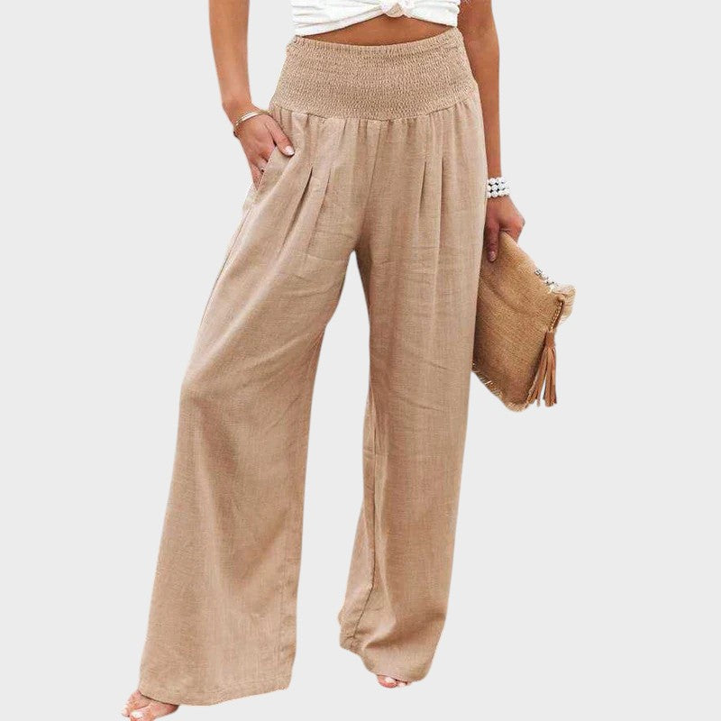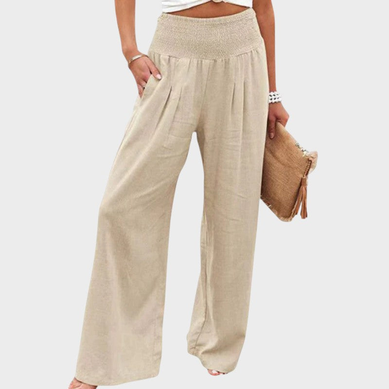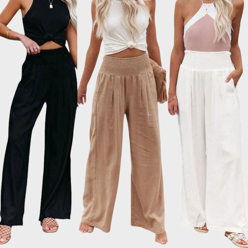 Нашите панталони Джулия™ са проектирани за максимален комфорт през топлите пролетни и летни месеци. Те са изработени от висококачествен памук, който се чувства мек и дишащ на кожата. Свободната кройка осигурява свобода на движение и придава отпуснат, но стилен вид. С еластичния колан получавате удобна и регулируема кройка през целия ден. Независимо дали правите разходка на плажа или пазарувате в града, панталоните Джулия™ са най-добрият избор за небрежен стил и несравним комфорт.