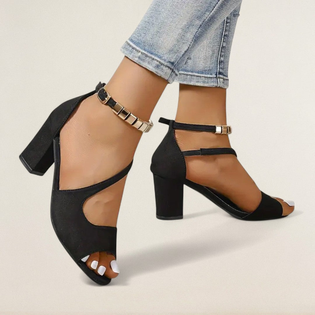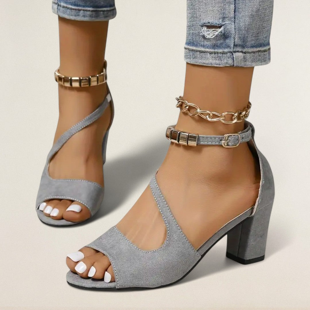 Вечни сандали с ток в бежови нюанси съчетават грация с сигурна стъпка. Дискретният дизайн с декоративно ремъче около глезена осигурява стабилност и визуална лекота. Перфектен избор за жени, които търсят стилни и същевременно удобни обувки за социални поводи и летни дни.