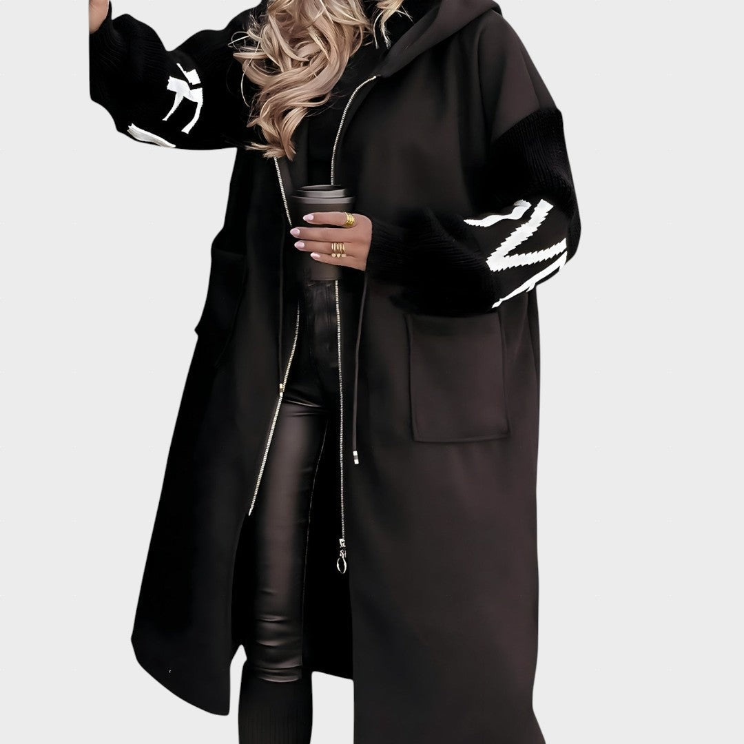 Придайте на ежедневието си нотка стил – с това яке, което съчетава модерен дизайн и максимален комфорт при носене. Свободната кройка осигурява приятно усещане, докато плетените ръкави с техния специален модел придават модерен акцент. Практичната качулка и просторните джобове го правят идеален спътник за града и свободното време.