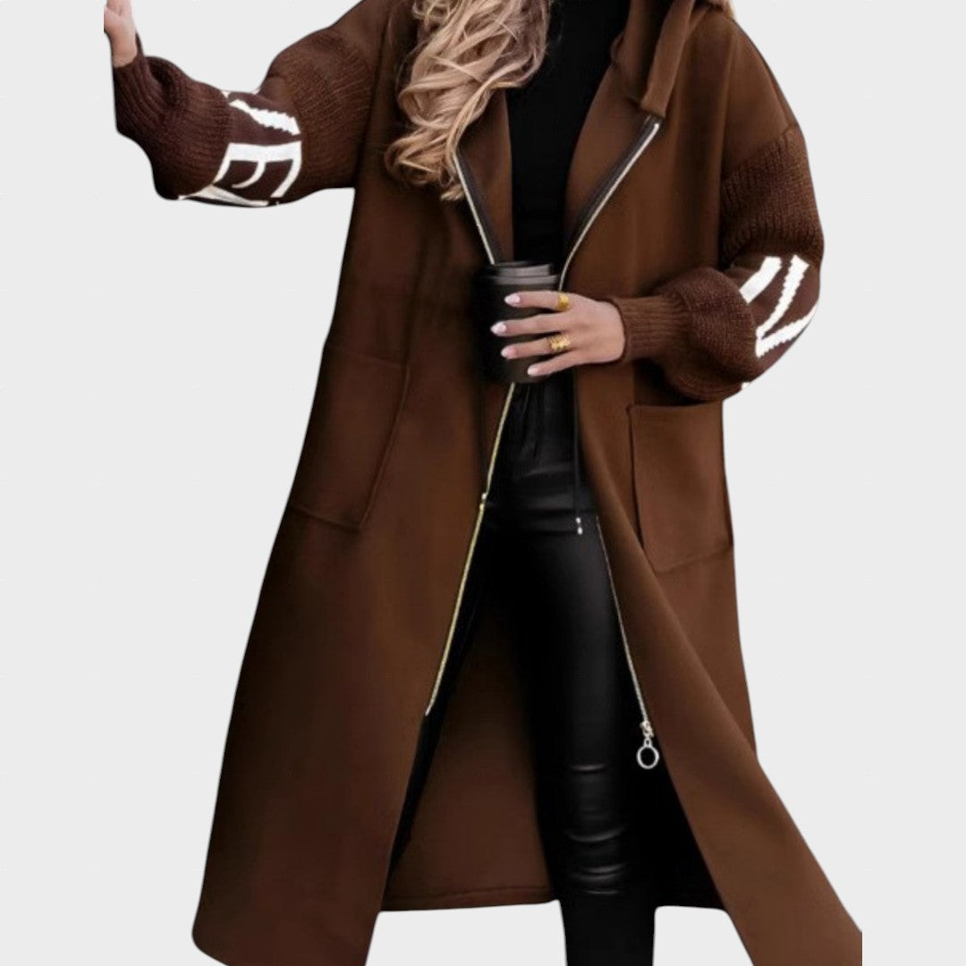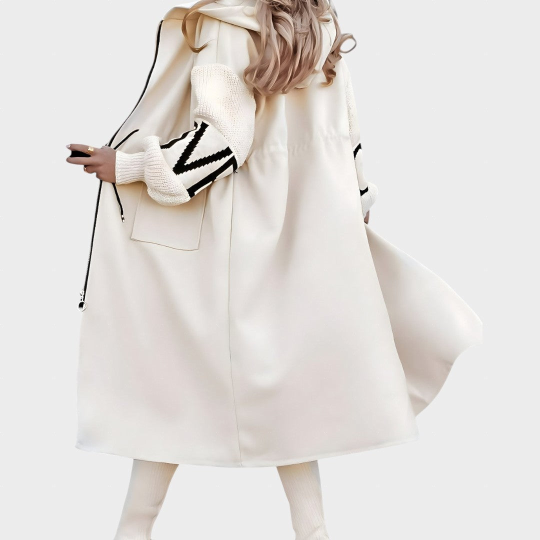 • Уникална комбинация от материали: Гладка повърхност, комбинирана с плетени ръкави – за модерен, хармоничен вид.