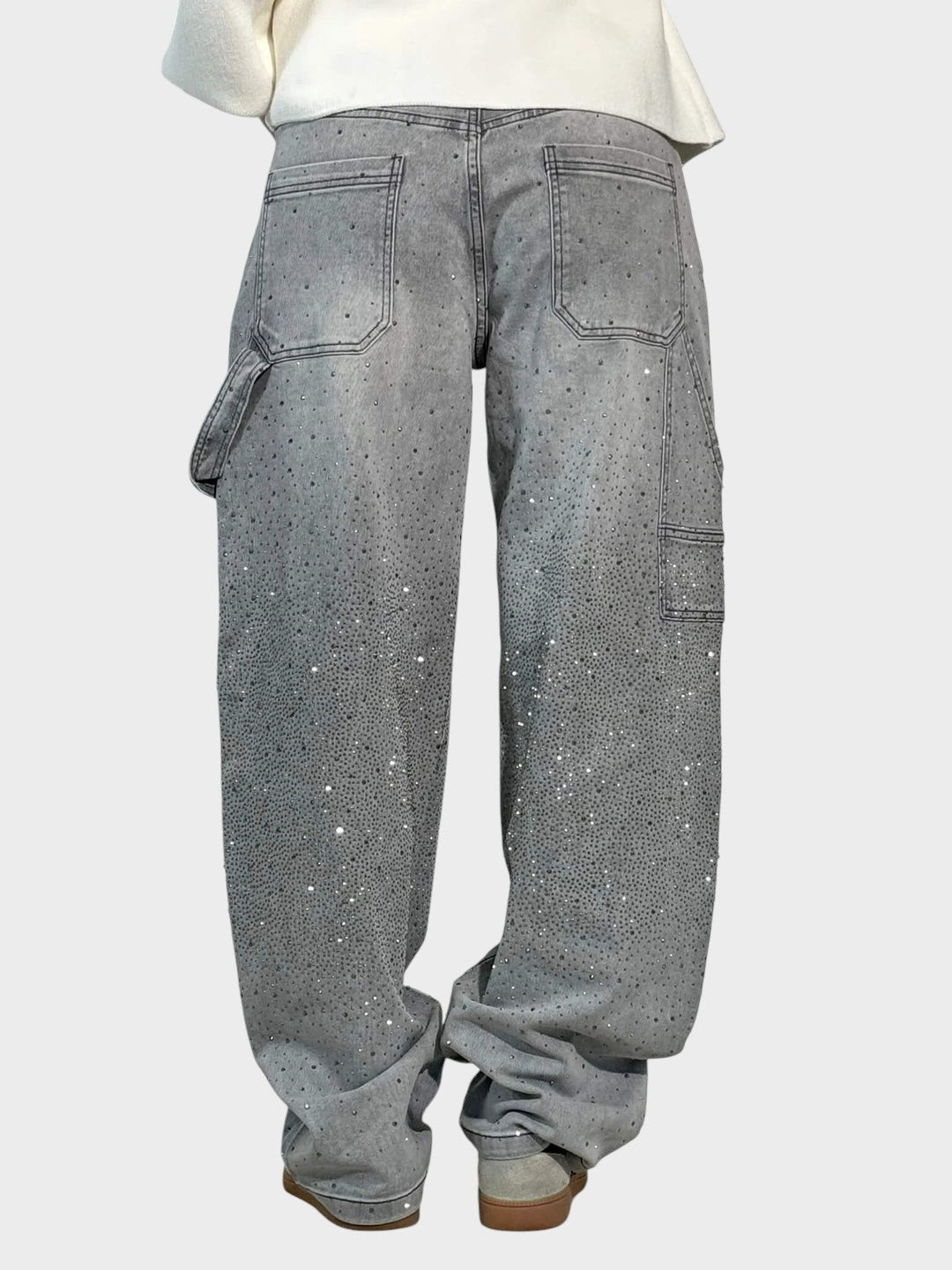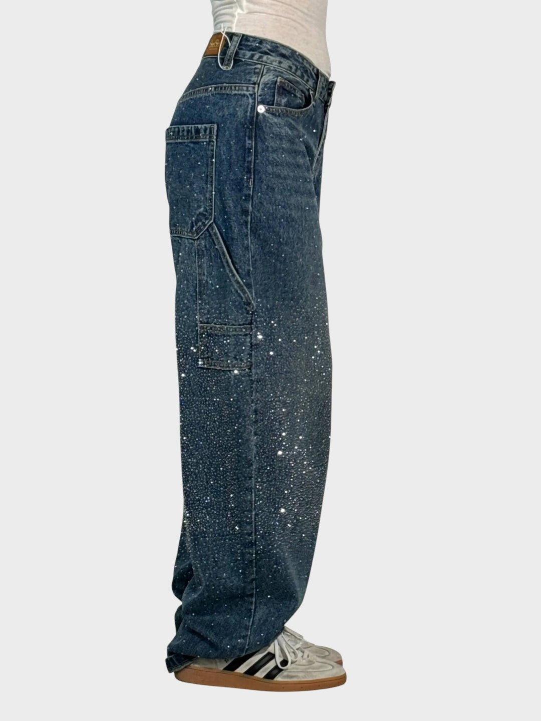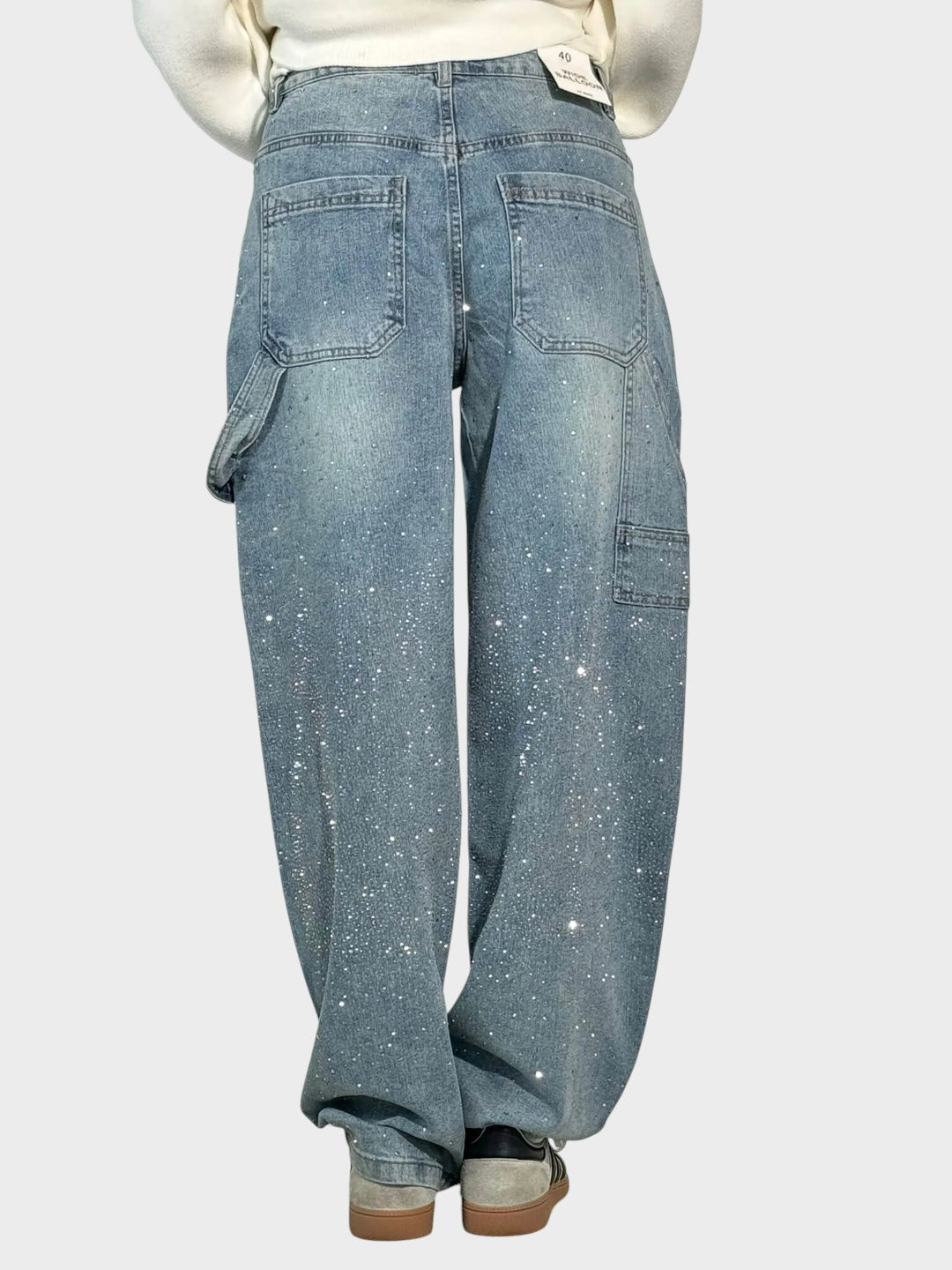 Тези елегантно декорирани дънки съчетават вечна елегантност с модерен комфорт. Блестящите детайли придават нотка лукс, докато свободният кройка създава ласкателна силуета. Идеални за стилни ежедневни облекла с уникален акцент.