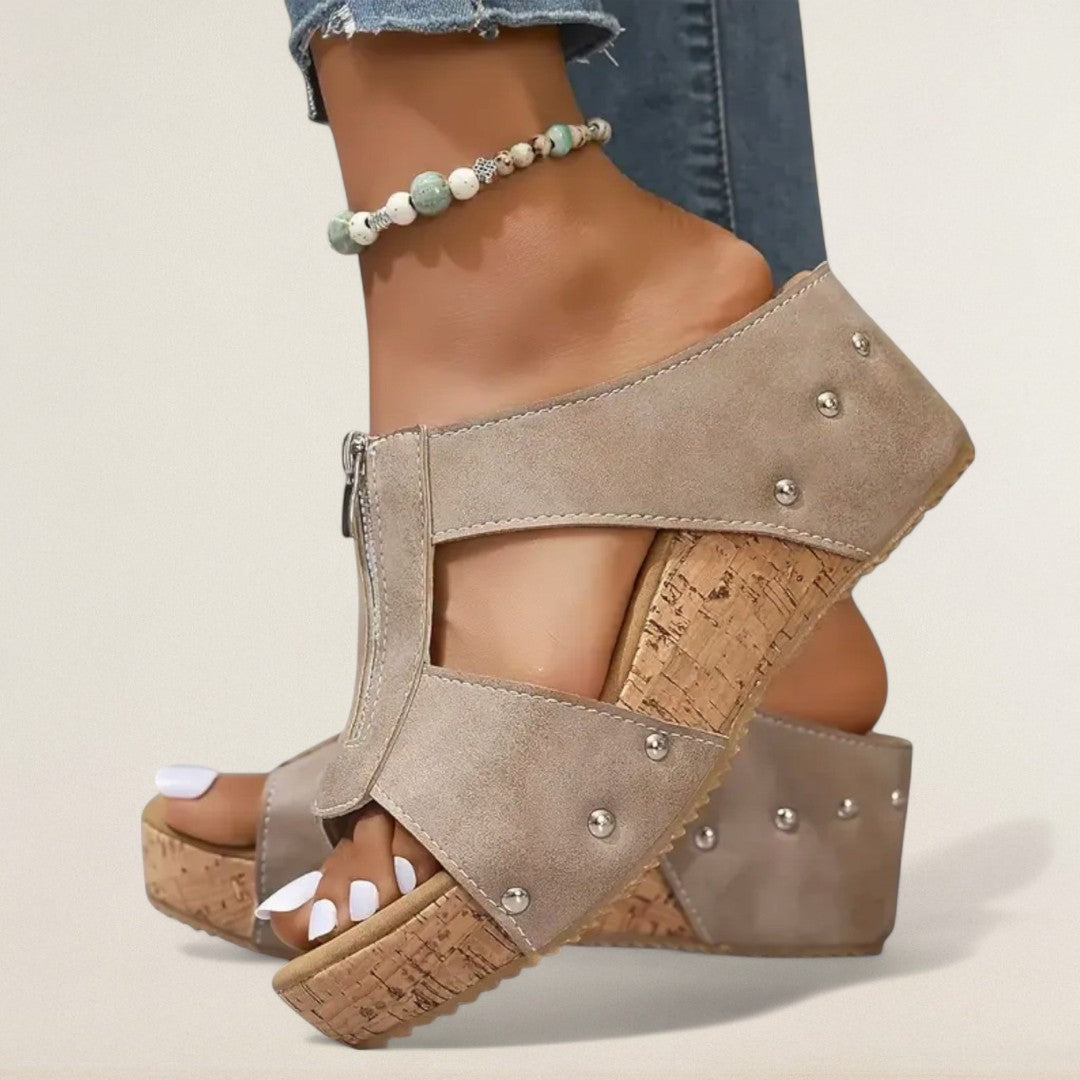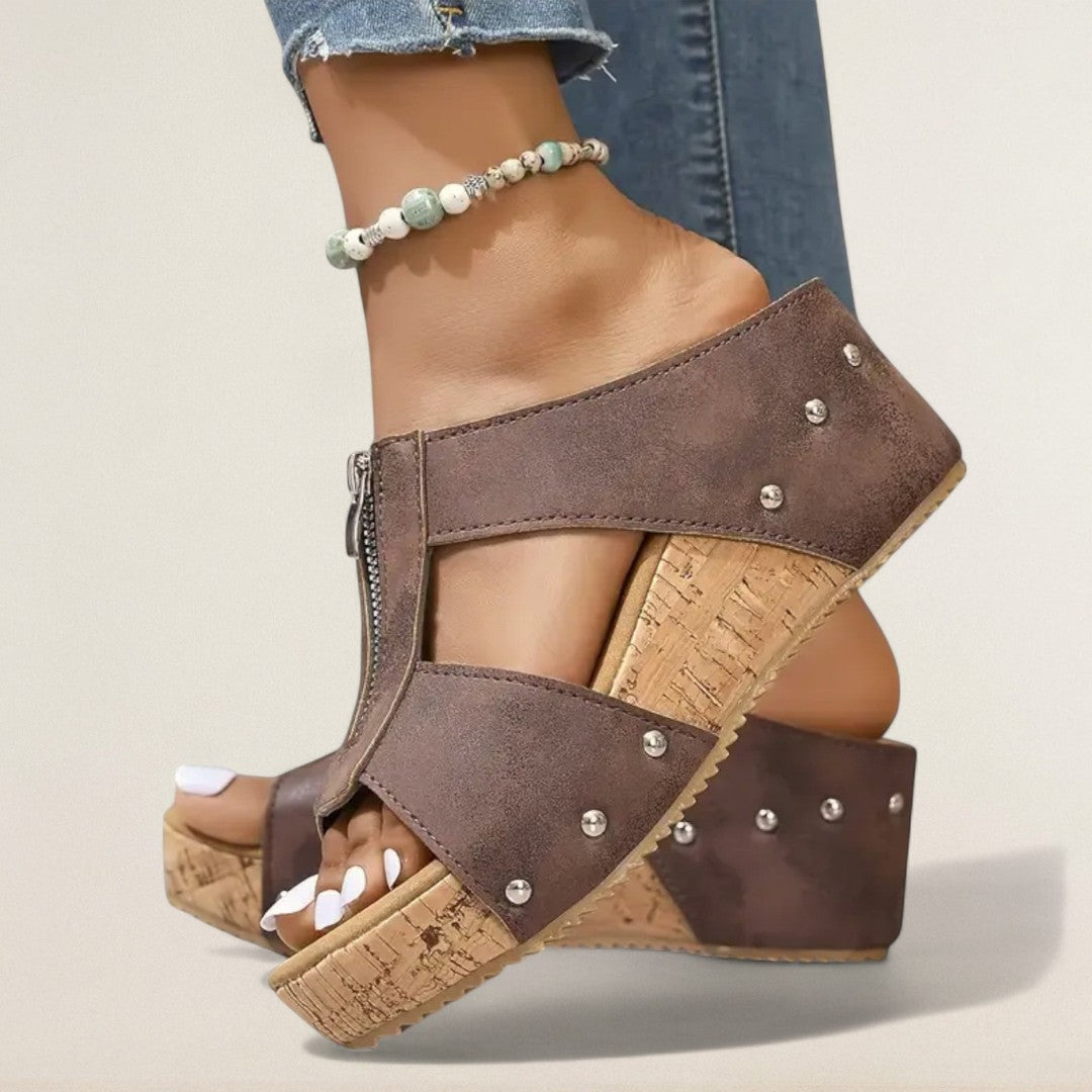 Тези дамски сандали с ток съчетават здравословна функционалност с модерен вид. Меката ортопедична стелка и анатомично оформената подметка осигуряват комфорт дори при целодневно носене. Стилният цип и металните детайли допълват вечния им дизайн, който всяка жена, търсеща ортопедични обувки без компромиси, ще оцени.