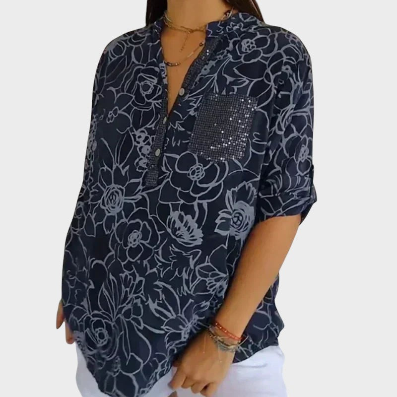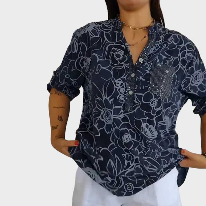 Тази ефирна блуза съчетава релаксиращ комфорт с женствена нотка. Красивият цветен десен придава свеж и стилен вид, докато свободната кройка я прави перфектна за ежедневието и отпускарското настроение. С навити ръкави и класически яка получаваш вечен дизайн, който лесно може да се стилизира за всякакви поводи.
