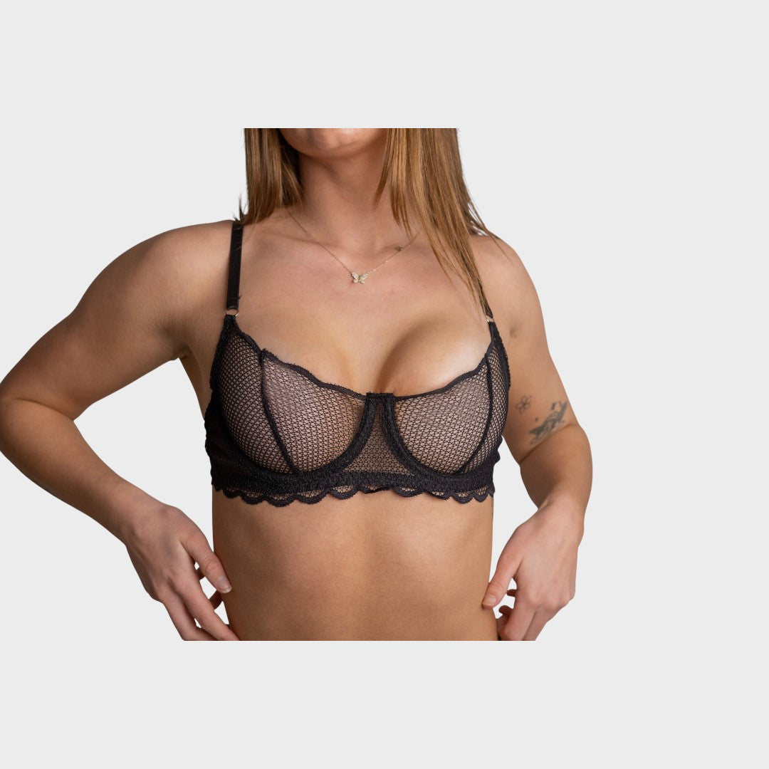 Прозрачни чашки от фин мрежест материал с текстурирана визия