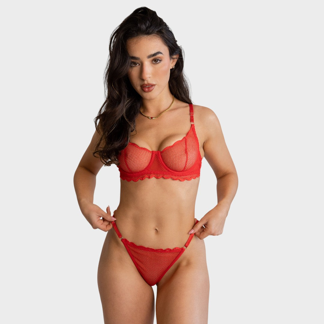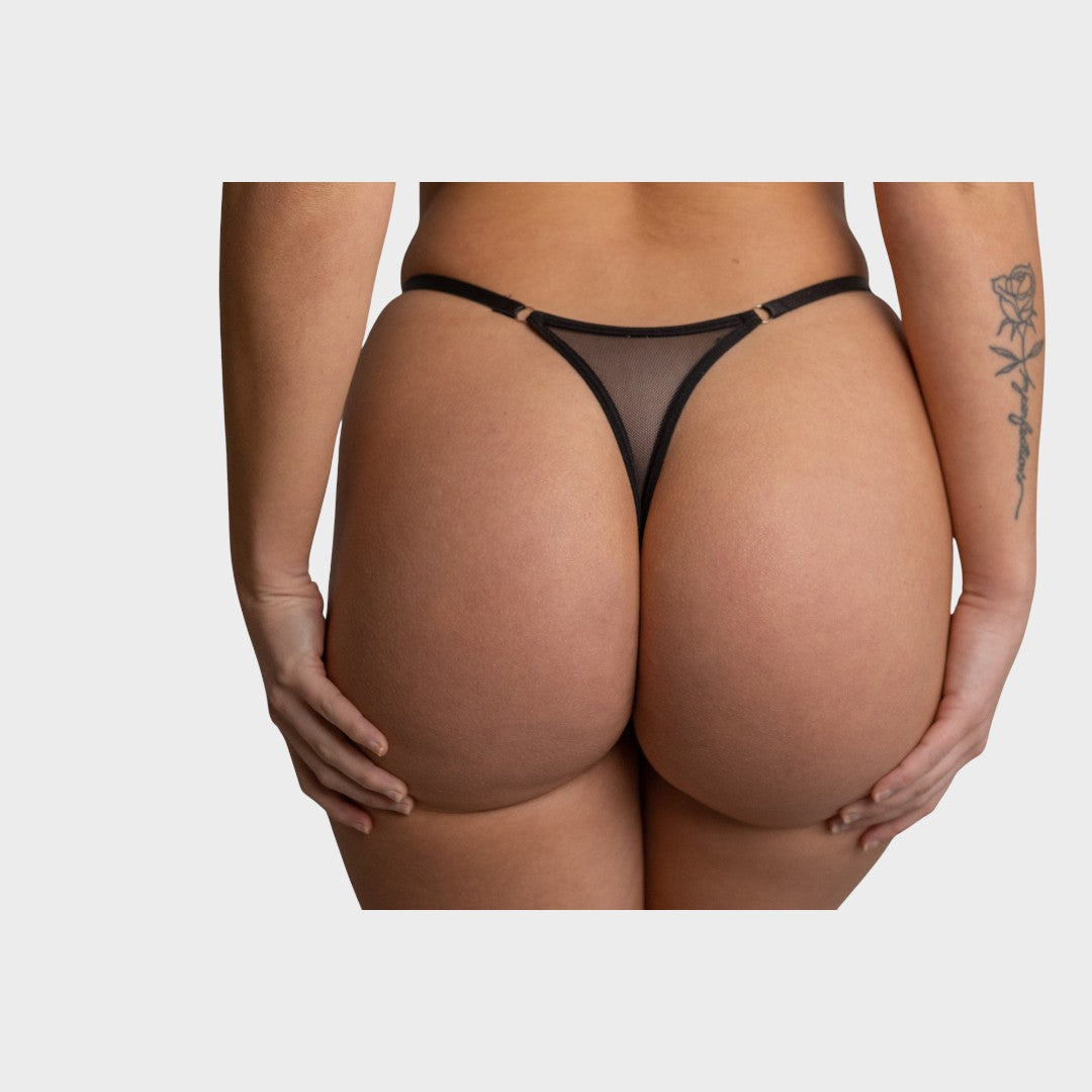Съвпадащ стринг от фин мрежест материал с нежен ръб