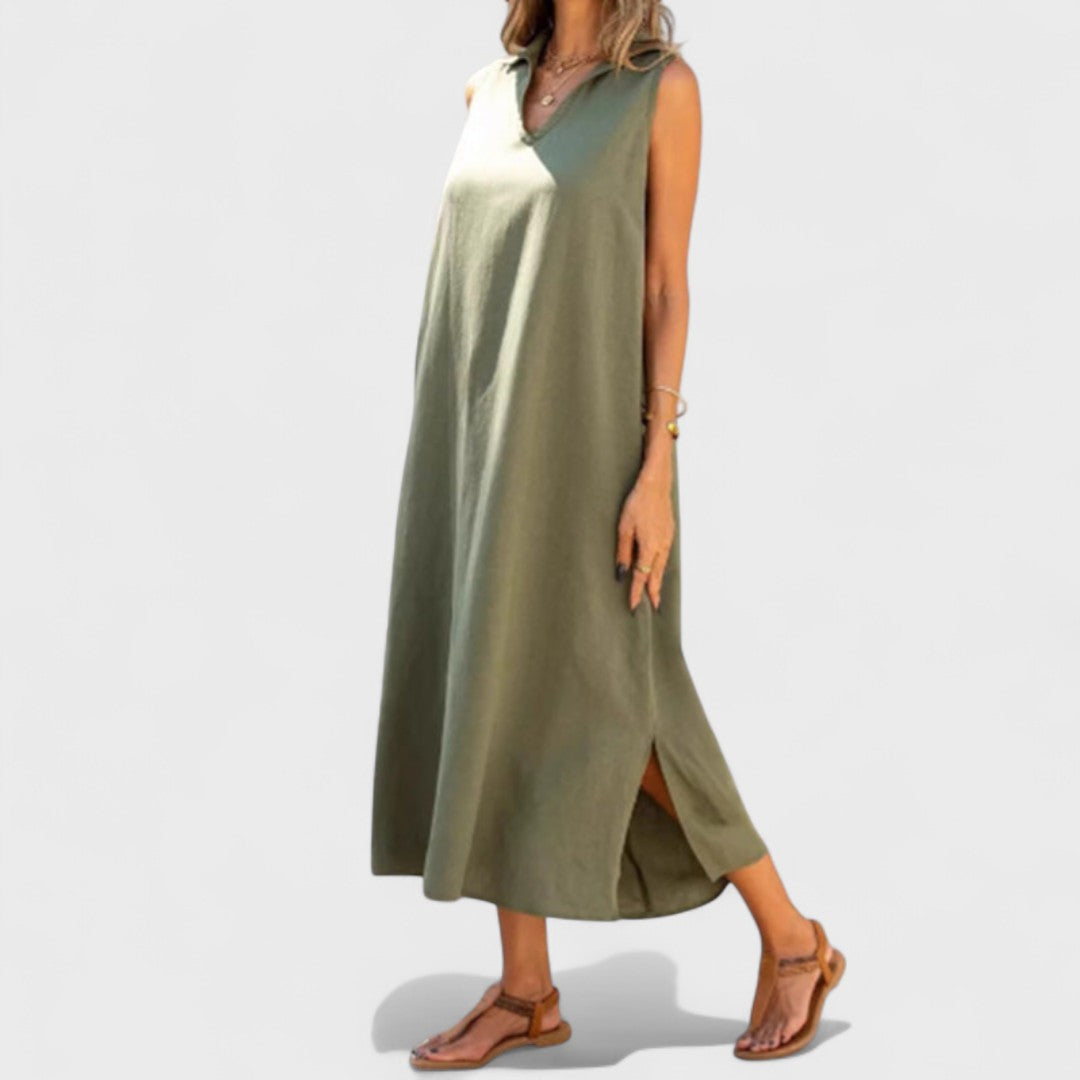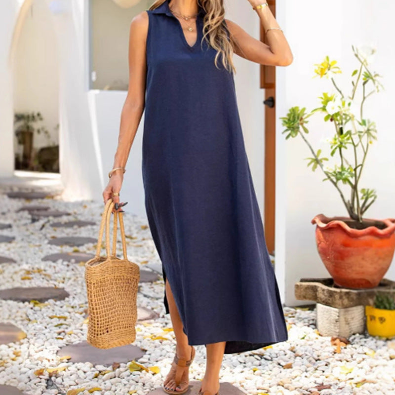 Открийте нашите дамски макси рокли без ръкави с дълбоко V-образно деколте и странични разрези, идеални за топли дни и неформални поводи. Тези рокли съчетават стил с комфорт и могат да бъдат стилизирани по различни начини.
